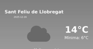 Predicció del Temps per a Sant Feliu de Llobregat - 11 de Gener de 2026 Avui, a Sant Feliu de Llobregat, es preveu un dia...