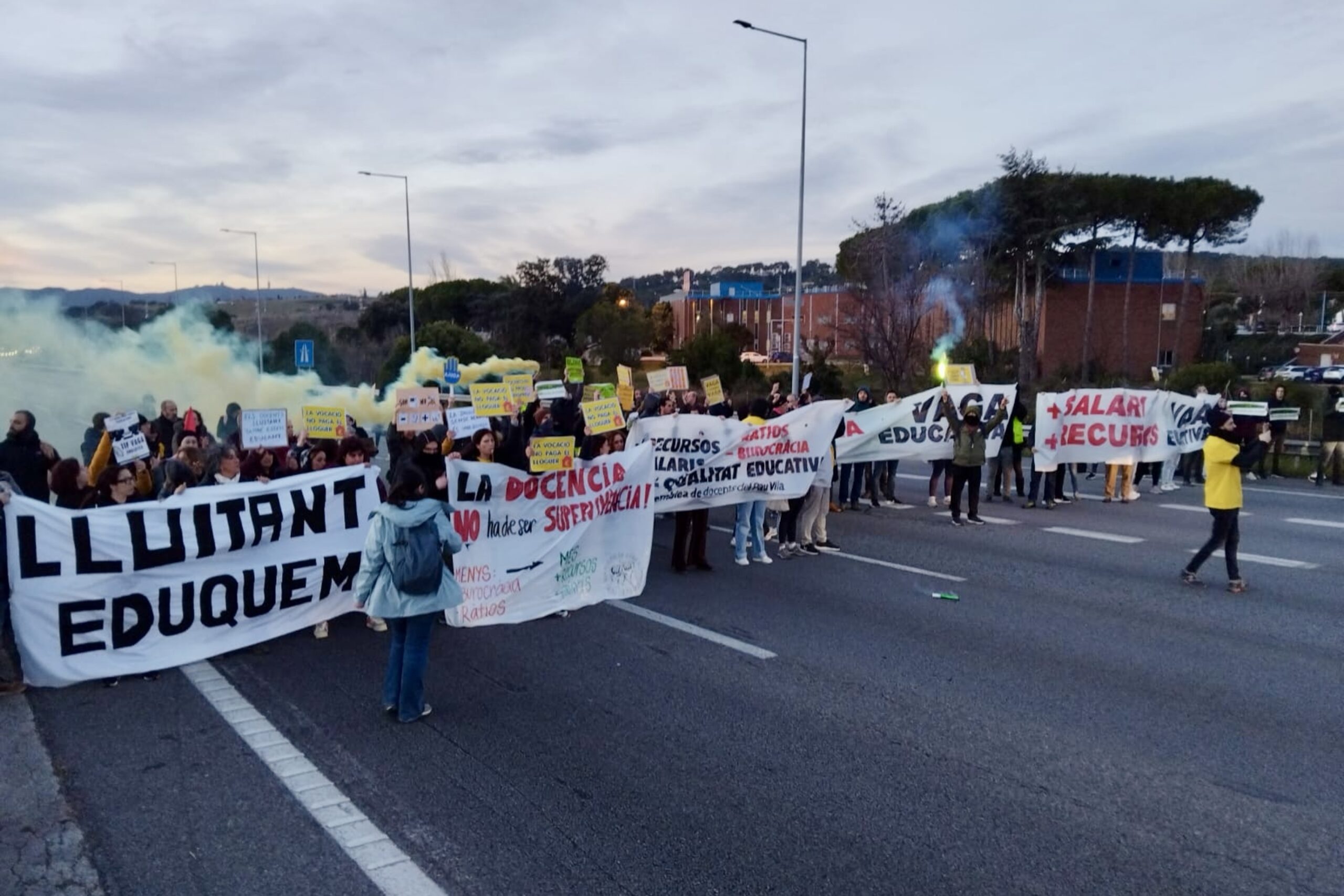 ACN Barcelona – Les protestes dels docents amb motiu de la vaga educativa han començat a les carreteres. Els professors han tallat diverses vies a partir de les set del matí. A Barcelona, han actuat a la Ronda Litoral en els dos sentits a l’altura de la Vila Olímpica durant uns 45 minuts, a la Gran Via a la Campana, la Ronda de Dalt i l’avinguda Meridiana. A Mataró, els manifestants han tallat la C-32 en sentit Barcelona durant mitja hora. A les comarques gironines ha resultat afectada l’N-II a Vilamalla i les sortides de Figueres sud i Girona sud a l’AP-7. Poc abans de les 10, el Servei Català de Trànsit ha informat que ja no quedava cap via tallada.