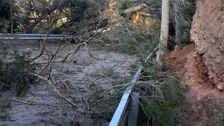 Les ventades han generat danys en desenes de carreteres de la Xarxa Local, amb caigudes d’arbres afectant diversos trams. Actualment, estàn tancades parts de les carreteres BV-4024, BP-1241, BV-2112 i altres. Dos trams afectats, BP-1432 i BP-2126, ja han estat resolts.
