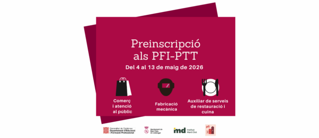 Les persones interessades en accedir a un PFI han de presentar la preinscripció. En particular, els alumnes que tinguin 18 anys o els compleixin durant el 2026 han de fer el tràmit personalment.