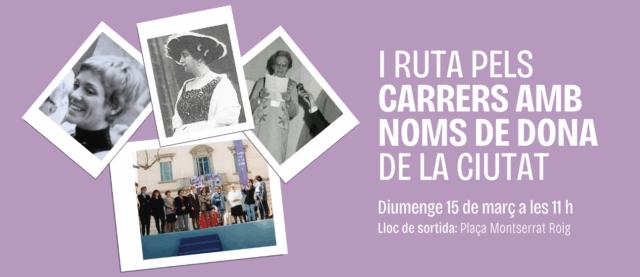 El recorregut es realitzarà el 15 de març i serà dirigit per la doctora en història Núria Miquel, qui oferirà informació sobre les biografies de les dones que nomenen aquests llocs. La jornada començarà a les 11 h a la plaça Montserrat Roig i continuarà per diversos punts d’interès fins a la plaça Elisabeth Eidenbenz, amb plafons informatius a cada parada.